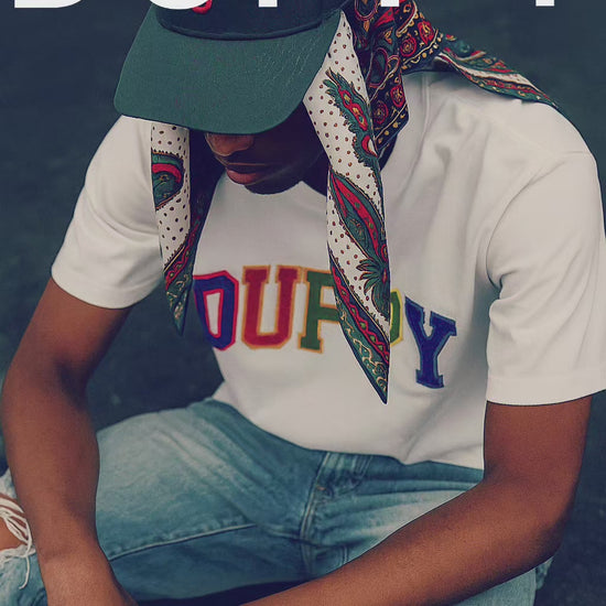 This OG white tee is the calm before the storm. Featuring bold multi-color chenille lettering across the chest, it’s the foundation piece of the movement — where simplicity meets statement. Perfect for those who move in silence but always get noticed.